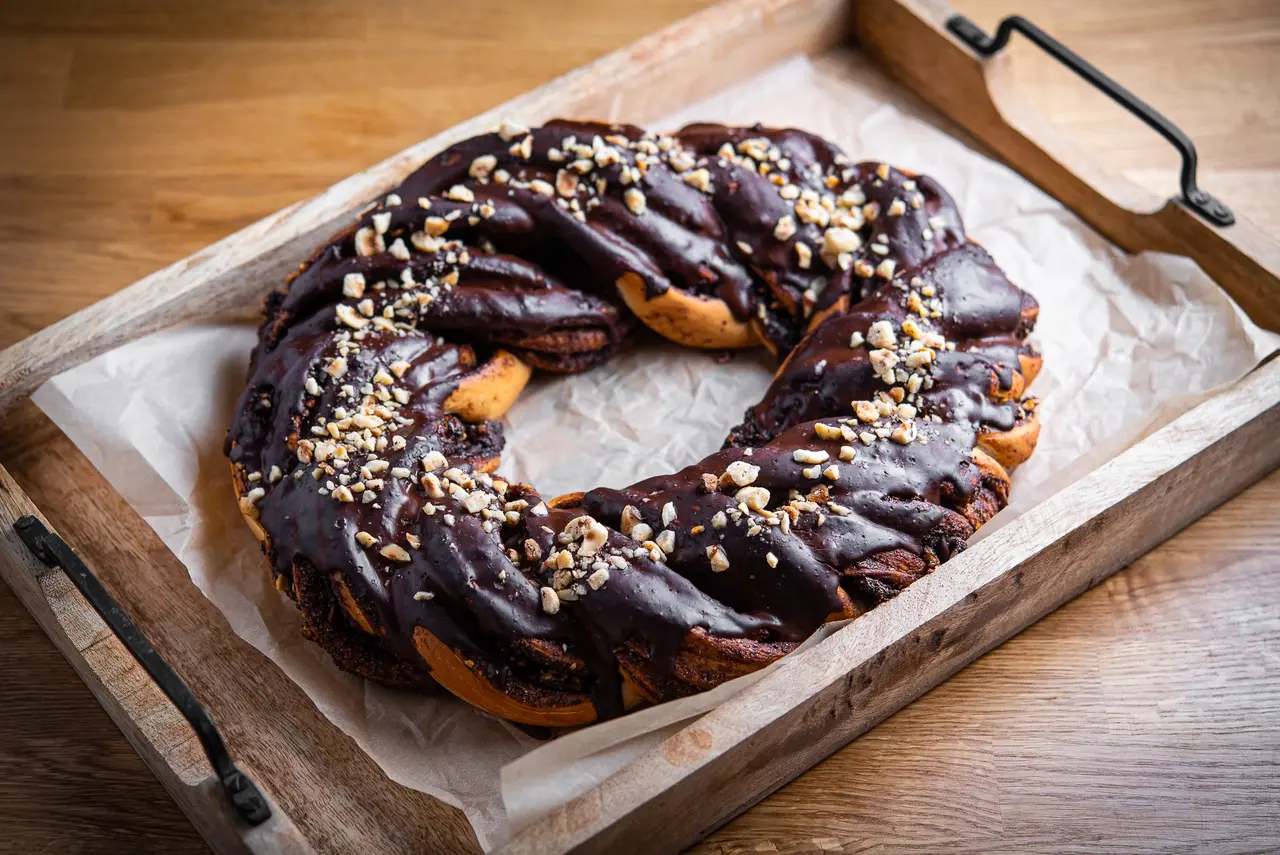 Kakao-pähklikreemi kringel šokolaadiglasuuriga 22€/kg
