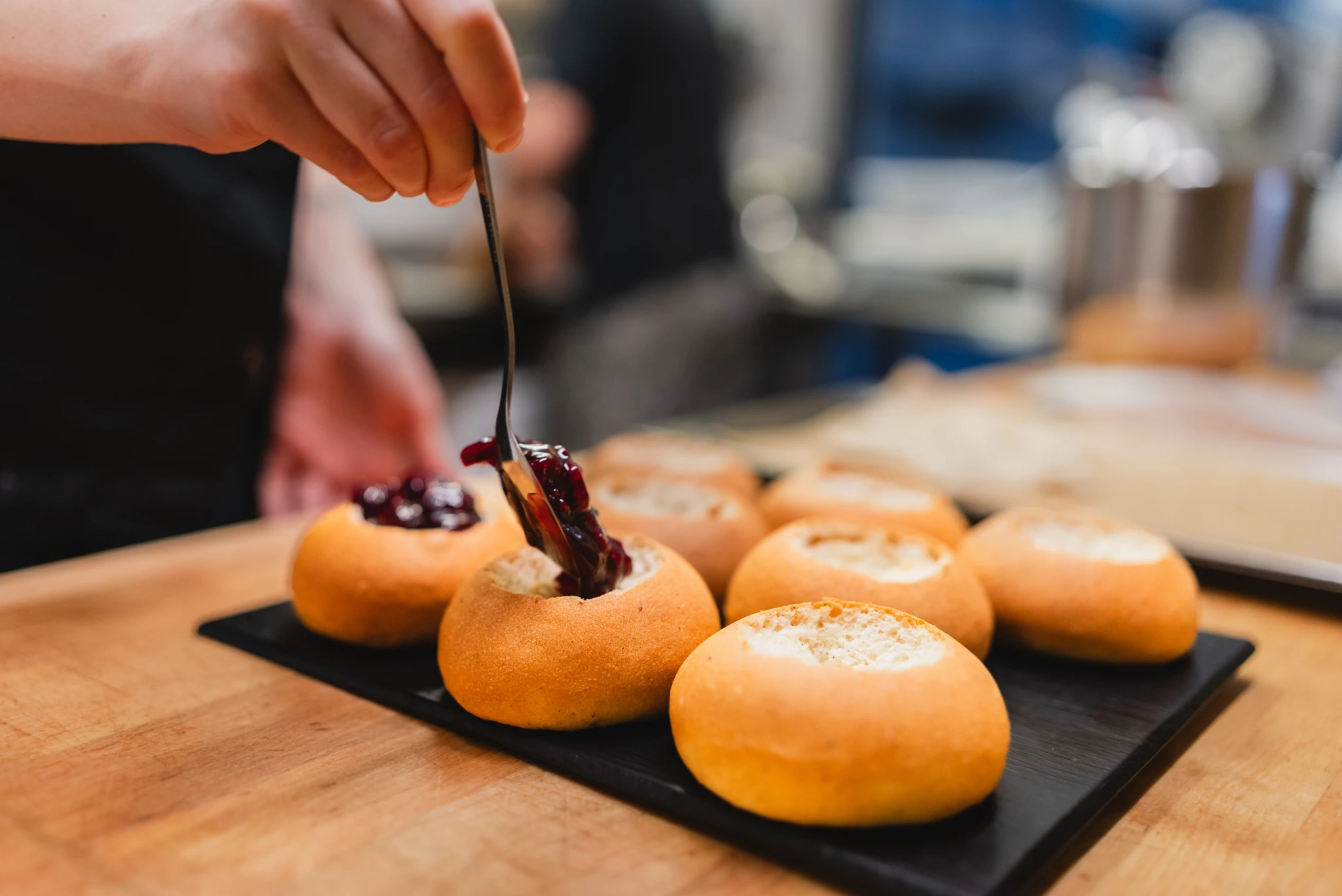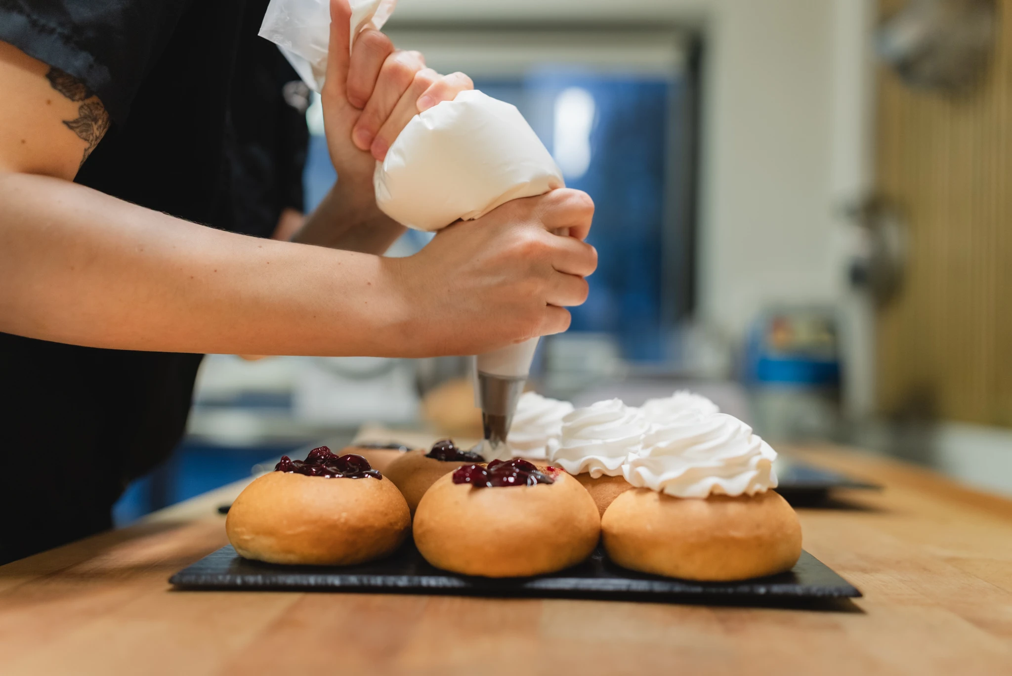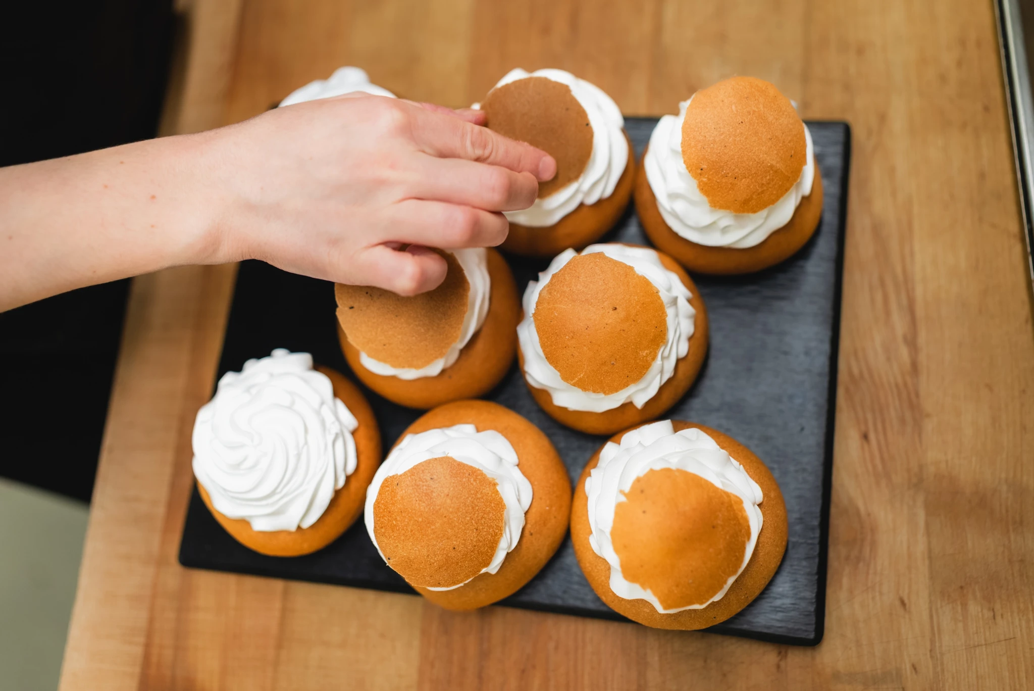 Meie vegan vastlakuklid on pehmed, värskelt küpsetatud ja täidetud õhulise taimse vahukoorega.